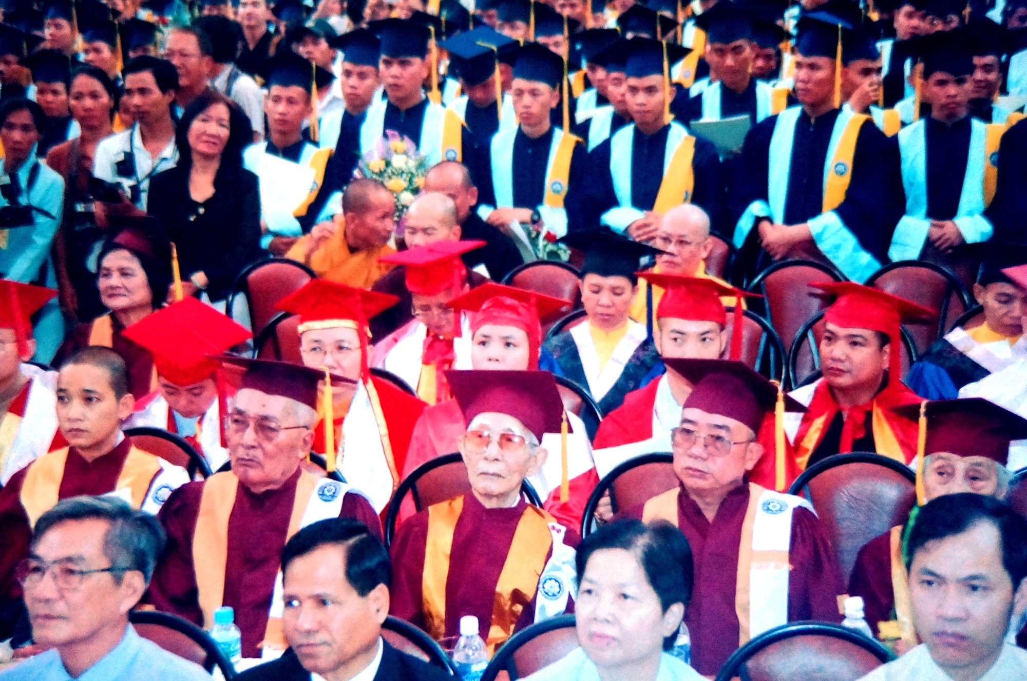 Hôm nay Tăng Ni sinh nhận văn bằng tốt nghiệp cũng có thể xem là một thành quả đạt được sau bốn năm nỗ lực học tập. Một niềm vui có thể đến khi nhận văn bằng tốt nghiệp Cử nhân Phật học. Tăng Ni sinh có quyền vui mừng về thành quả nỗ lực của mình nhưng không nên tự bằng lòng thỏa mãn với kết quả đó. Hôm nay nhận văn bằng Cử nhân cũng thế, sau này có học thêm nhận văn bằng Thạc sĩ hay Tiến sĩ cũng thế. Văn bằng chỉ đánh dấu một chặng đường nỗ lực hoàn thiện tự thân, chứ không phải mục đích của việc học tập, càng không phải mục đích của người xuất gia tu Phật. Học tốt học giỏi thì có được văn bằng, nhưng văn bằng không phải là mục đích của việc học. Học là để sống tốt, sống thiện, sống hạnh phúc an lạc, lợi mình lợi người. Mục đích của người học Phật là để thực nghiệm an lạc Niết bàn và chia sẻ niềm an lạc ấy với mọi người.