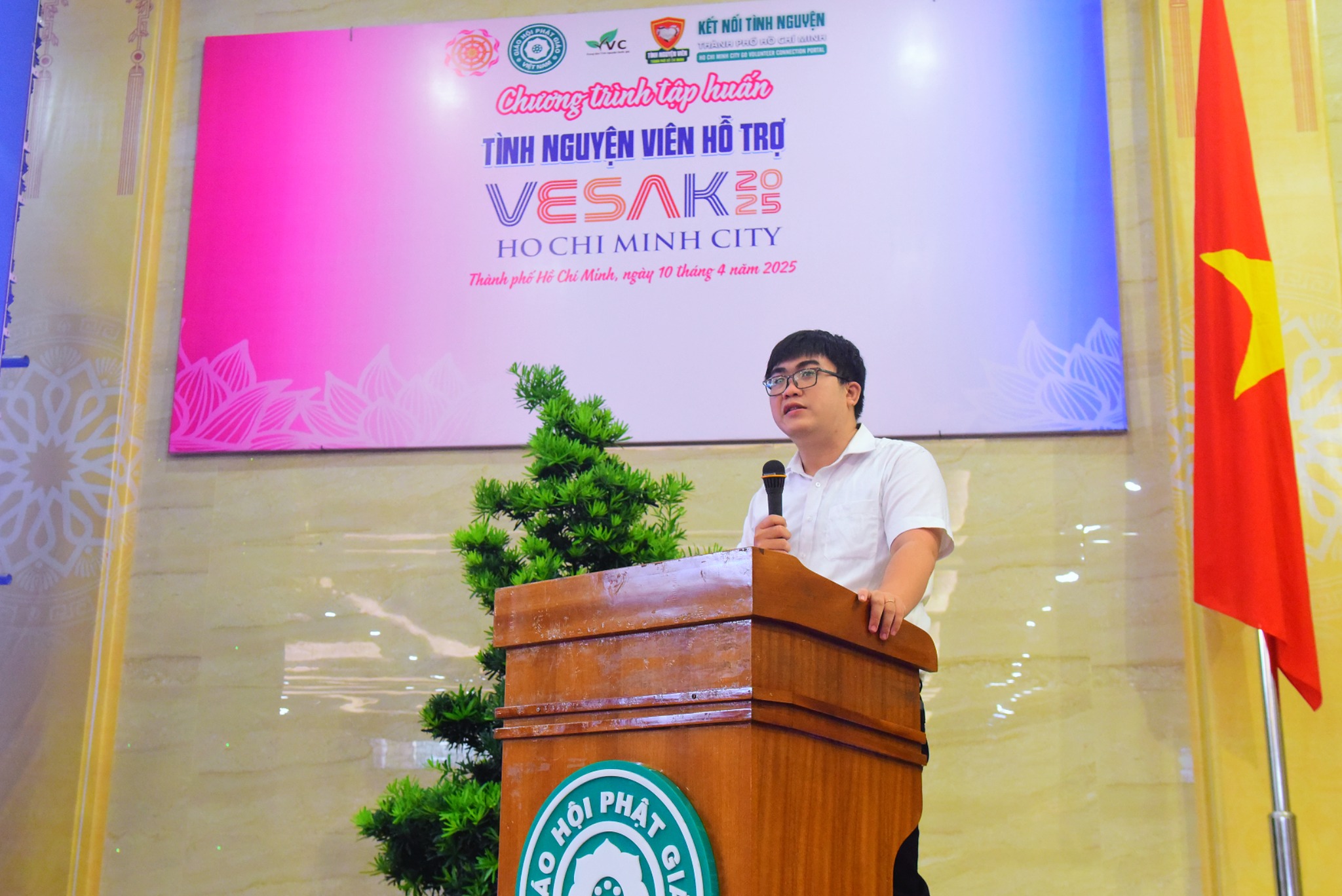 Thượng tọa Thích Quang Thạnh, Phó Tổng Thư ký kiêm Trưởng ban Điều phối tình nguyện viên, chia sẻ rằng, buổi tập huấn này là kết quả của 3 đợt phỏng vấn và tuyển chọn nghiêm ngặt các tình nguyện viên nòng cốt, đặc biệt là các sinh viên. Thượng tọa nhấn mạnh: “Chương trình tập huấn không chỉ trang bị kiến thức cần thiết mà còn là cơ hội để các bạn tình nguyện viên nâng cao kỹ năng phục vụ, truyền tải thông điệp hòa bình và giá trị Phật giáo đến bạn bè quốc tế.”