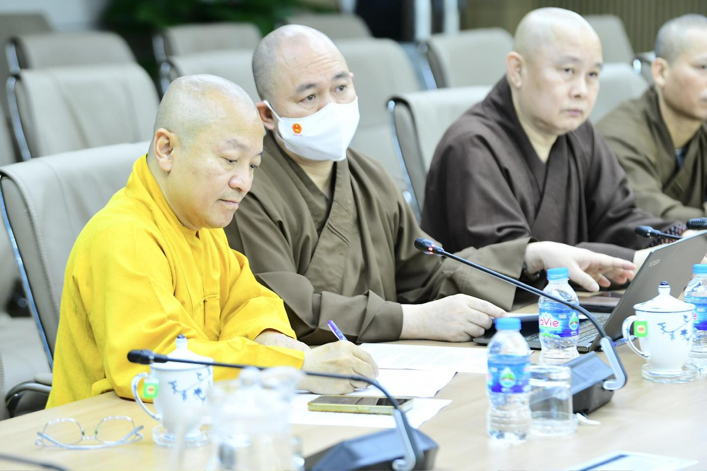 Tham gia buổi làm việc có TT. Thích Đức Thiện – Phó Chủ tịch, Tổng Thư ký BTC Đại lễ, TT. Thích Nhật Từ – Phó Chủ tịch, Phó Tổng Thư ký Thường trực Ban Tổ chức Đại lễ, chư tôn đức các Ban chuyên môn, bộ phận văn phòng phục vụ Đại lễ.