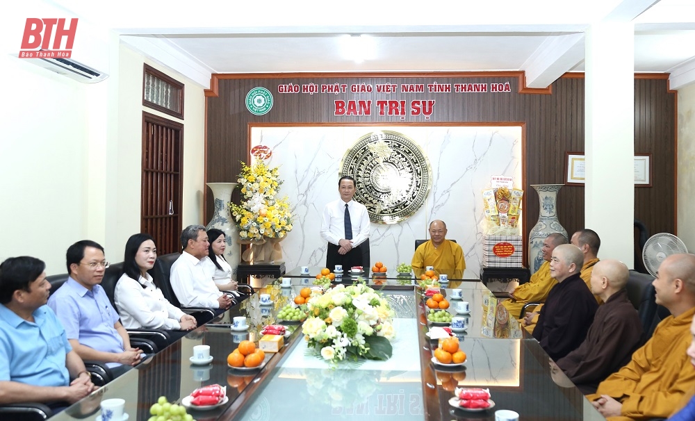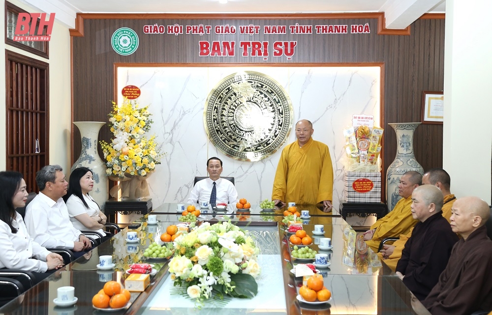 Chủ tịch UBND tỉnh Đỗ Minh Tuấn cùng các thành viên đoàn công tác đã đến thăm, chúc mừng Ban Trị sự GHPG Việt Nam tỉnh Thanh Hóa; Thượng tọa Thích Tâm Định, Ủy viên Hội đồng trị sự GHPG Việt Nam, Trưởng ban Trị sự GHPG Việt Nam tỉnh Thanh Hóa; Thượng Tọa Thích Tâm Đức, Chứng minh Ban Trị sự GHPG Việt Nam tỉnh Thanh Hóa, Trụ trì Chùa Thanh Hà; Ni trưởng Thích Nữ Đàm Nhung, nguyên Trưởng ban Trị sự GHPG Việt Nam tỉnh Thanh Hóa, Trụ trì Chùa Hương Quang cùng các tăng, ni, phật tử GHPG Thanh Hóa.