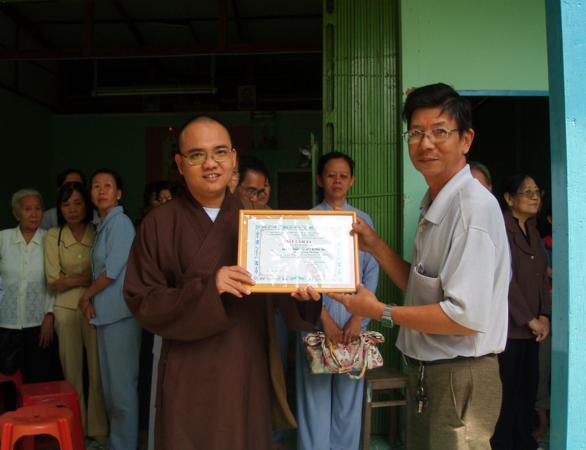Tiếp theo, đại diện Chính quyền địa phương phát biểu, cám ơn Ban Từ Thiện Hương Sen và trao giấy cảm tạ của UBND xã Thường Lạc cho ĐĐ.Thích Minh Bảo.