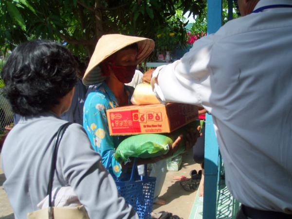 Nhìn bà con chơn chất, đặc biệt là những cụ già lớn tuổi đến nhận quà bày tỏ niềm vui và lòng biết ơn, làm cho mọi người trong đoàn như quên đi những mệt nhọc khi vượt chặng đường xa đến nơi đây. Mọi người cảm thấy ấm lòng hơn và lớn mạnh hơn trong tình yêu thương nối kết với nhau.