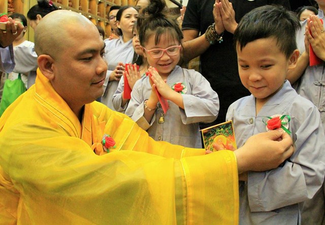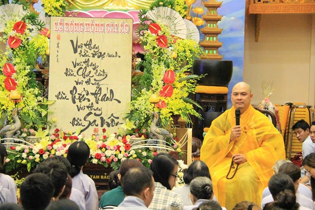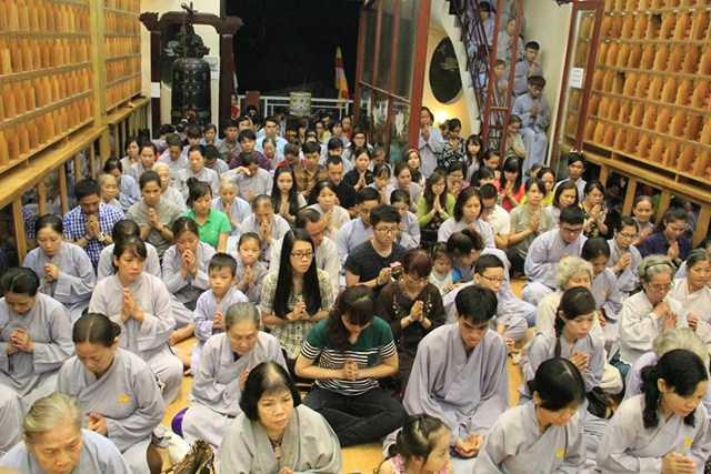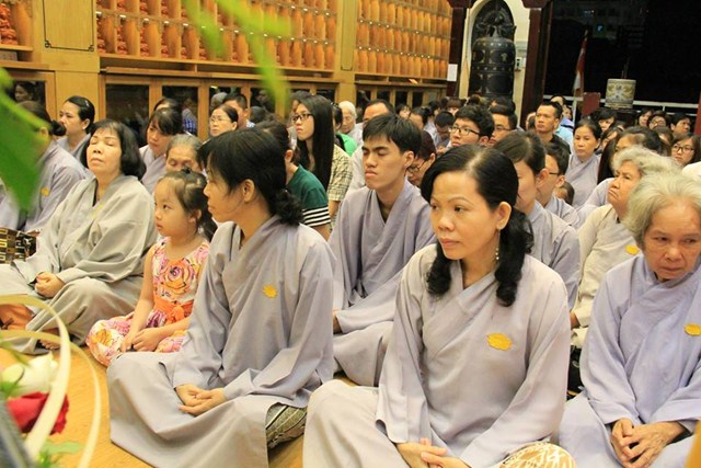 Buổi lễ diễn ra có một cách trang nghiêm và thành kính. Mở đầu là bài pháp thoại làm Đại Đức Thích Lệ Minh – Ủy viên Ban Hoằng Pháp Trung Ương GHPGVN thuyết giảng cho chủ đề “MẸ LÀ TIẾNG GỌI CỦA TÌNH THƯƠNG” đã làm cho khoé mắt của đại của đại chúng rơi nhiều giọt lệ khi nghĩ về lối sống và sự báo đáo công ơn cha mẹ của bản mình còn nhiều khiếm khuyết. Kế tiếp là nghi thức cài hoa hồng mùa Vu Lan và Tháp nến cầu nguyện.