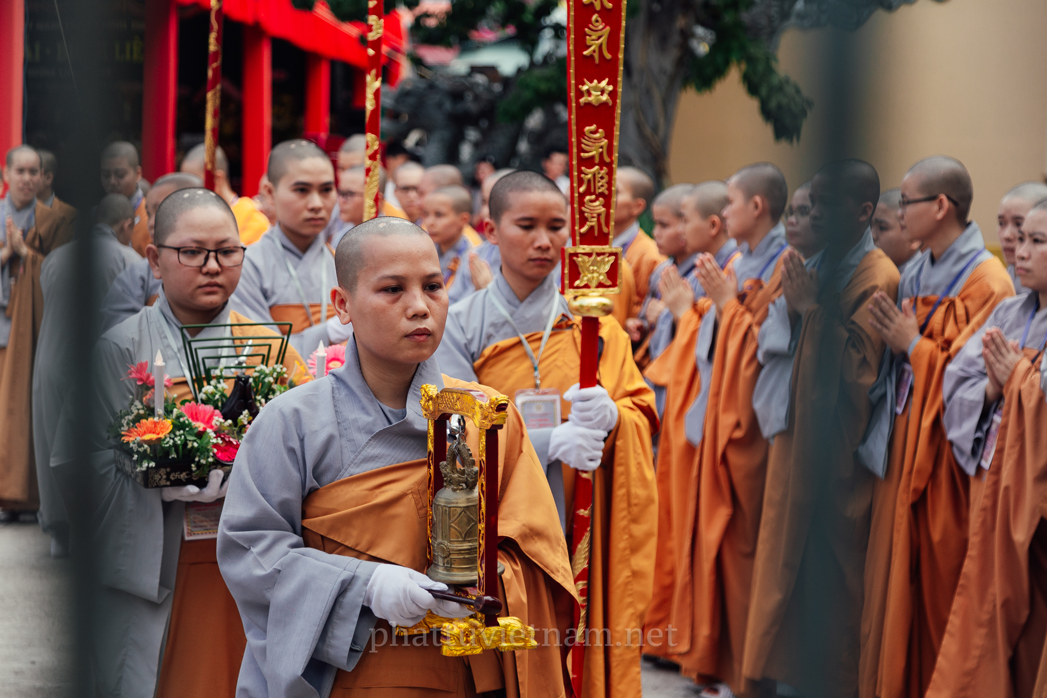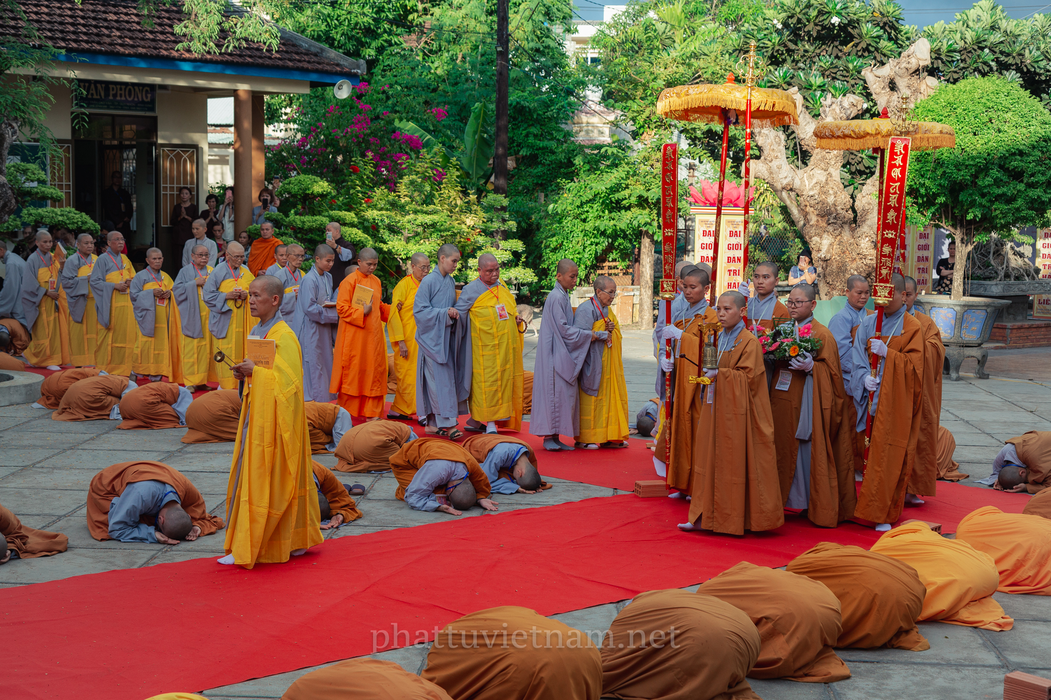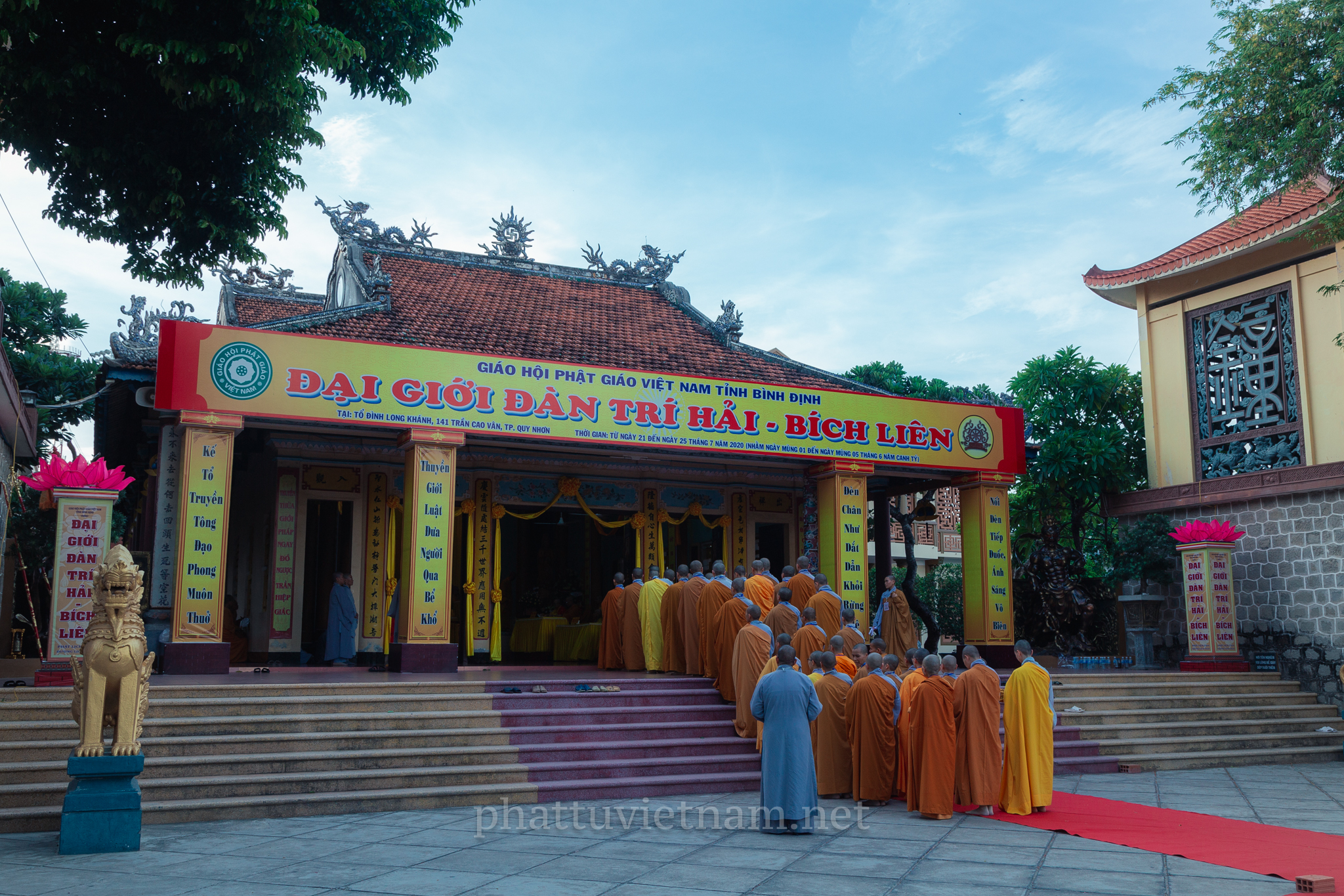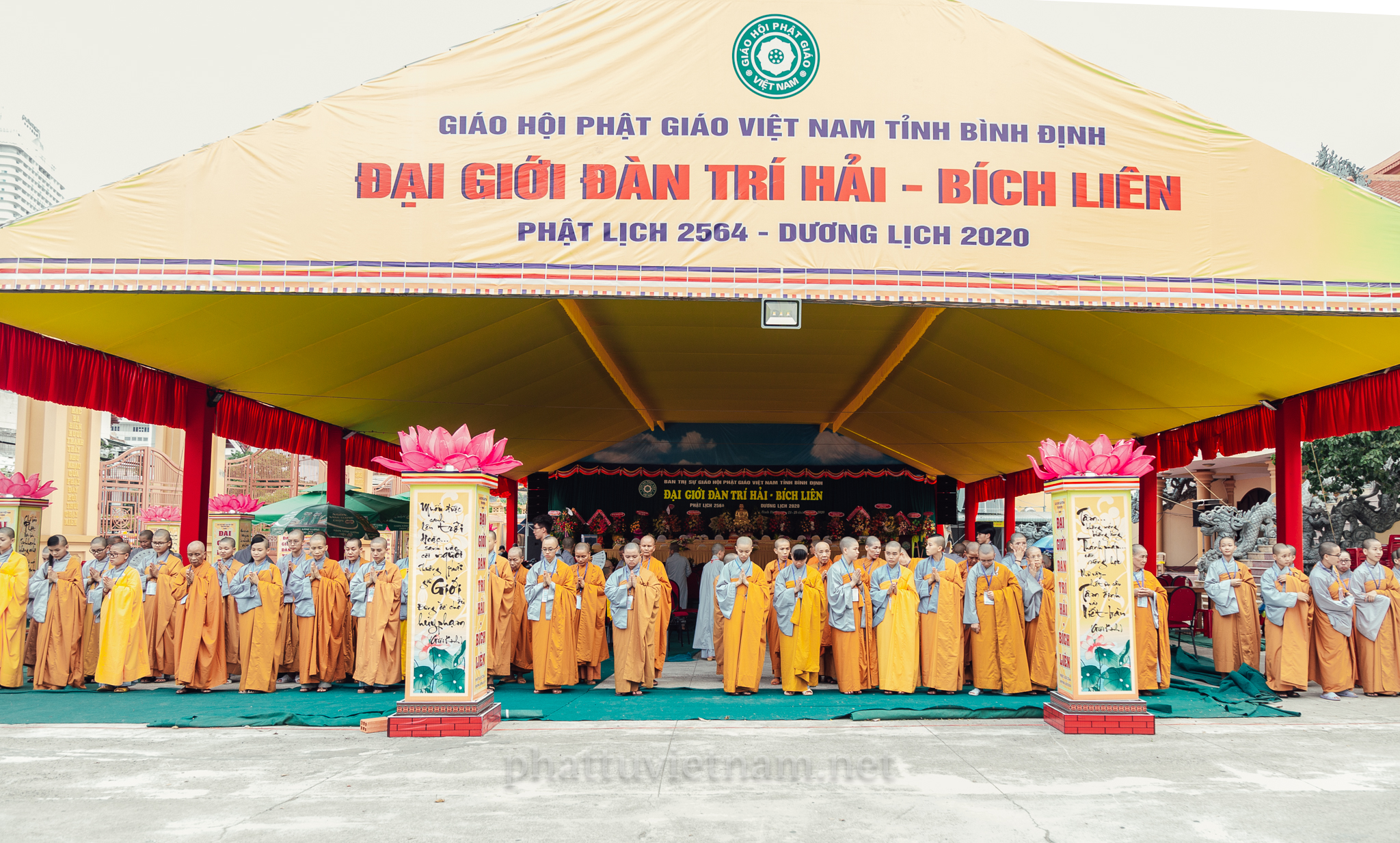PTVN – Sáng ngày 23/7/2020 (nhằm ngày 3/6 Canh Tý), tại Đại giới trường Ni chùa Tâm Ấn (58B, Ngô Quyền, P.Lê Lợi, TP.Quy Nhơn), chư tôn đức Ni Ban Dẫn thỉnh đã hướng dẫn các giới tử Tỳ-kheo Ni cung thỉnh Hội đồng Thập sư Ni quang lâm giới trường truyền Tỳ-kheo Ni giới cho 47 giới tử tại Đại giới đàn Trí Hải – Bích Liên PL.2564.