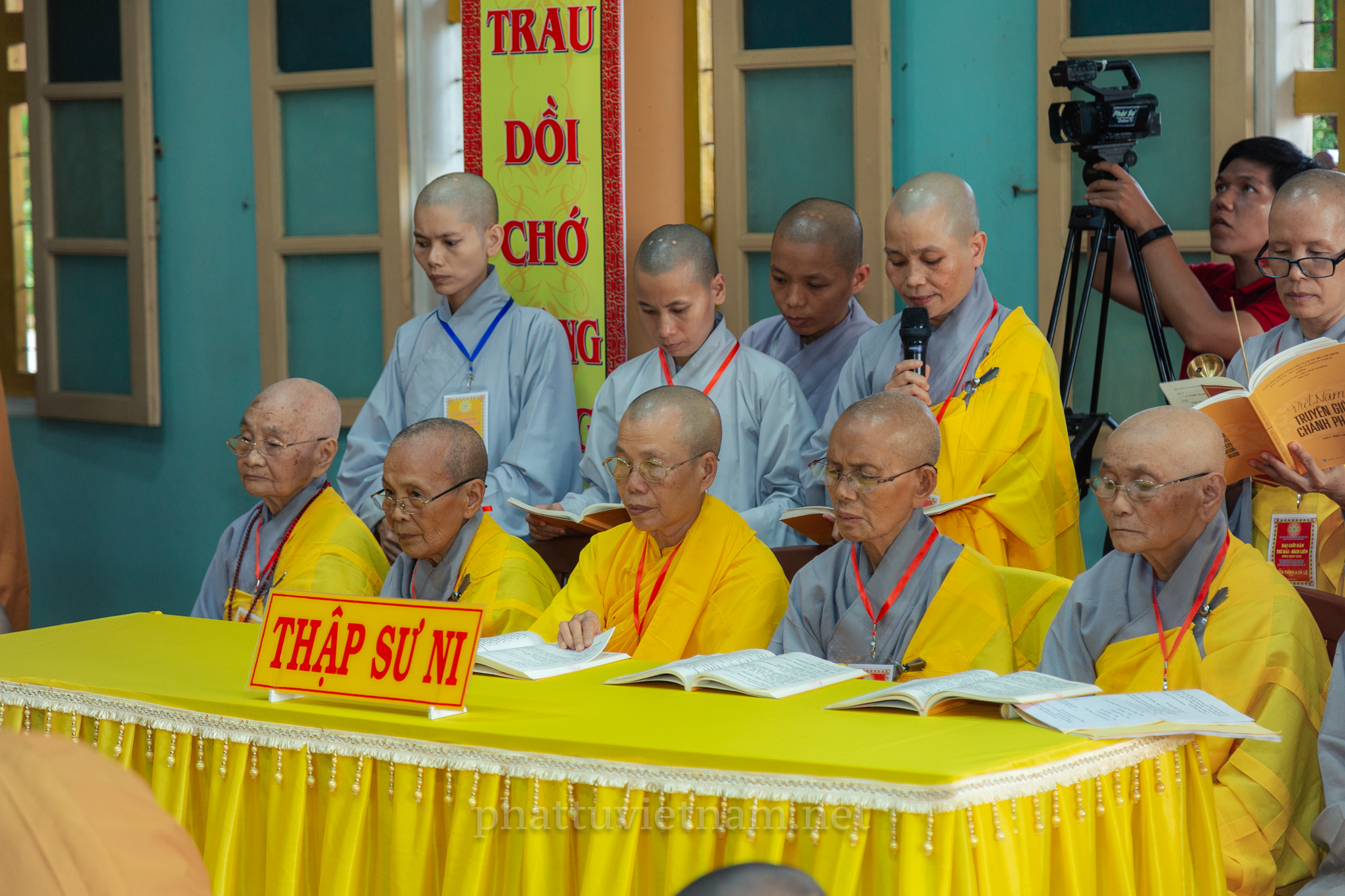 Hội đồng Thập sư Ni: Đường đầu Hòa thượng Ni: Ni Trưởng Thích Nữ Hạnh Quang, Yết ma A-xà-lê: Ni trưởng Thích Nữ Hạnh Minh, Giáo thọ A-xà-lê: Ni trưởng Thích Nữ Hạnh Thiện, Đệ nhất tôn chứng A-xà-lê: Ni trưởng Thích Nữ Hạnh Nguyện, Đệ nhị tôn chứng A-xà-lê: Ni trưởng Thích Nữ Kinh Liên, Đệ tam tôn chứng A-xà-lê: Ni sư Thích Nữ Như Hải, Đệ tứ tôn chứng A-xà-lê: Ni sư Thích Nữ Thông Nhiên, Đệ ngũ tôn chứng A-xà-lê Ni sư Thích Nữ Hạnh Minh, Đệ lục tôn chứng A-xà-lê: Ni sư Thích Nữ Hạnh Giải, Đệ thất tôn chứng A-xà-lê: Ni sư Thích Nữ Hạnh Huệ.