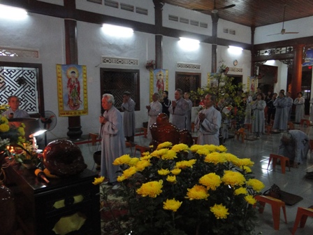 Tại Tịnh Xá Ngọc Ban P.Tân Hòa dưới sự chủ sám của Sư Cô TN. Thảo Liên cùng chư Ni bổn tự đã tuyên sớ cầu an cho hơn 800 Phật tử khắp nơi trong thành phố về tham dự.