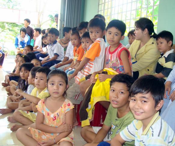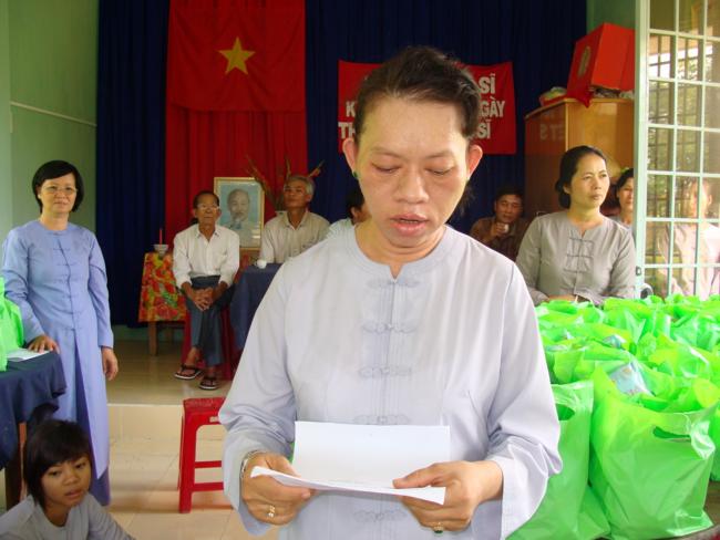 Tiếp theo, em Nguyễn Ngọc Bích Tuyền đại diện cho các bạn học sinh nói lời cảm tạ và hứa sẽ cố gắng học hành, siêng làm việc thiện, rèn luyện đạo đức để trở thành người hữu ích cho xã hội, cho làng xã mình, bởi vì “Ấp Đồng – quê hương chúng con – hộ nghèo và khó khăn vẫn còn rất nhiều”.