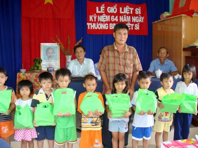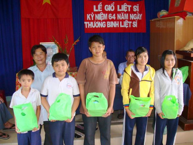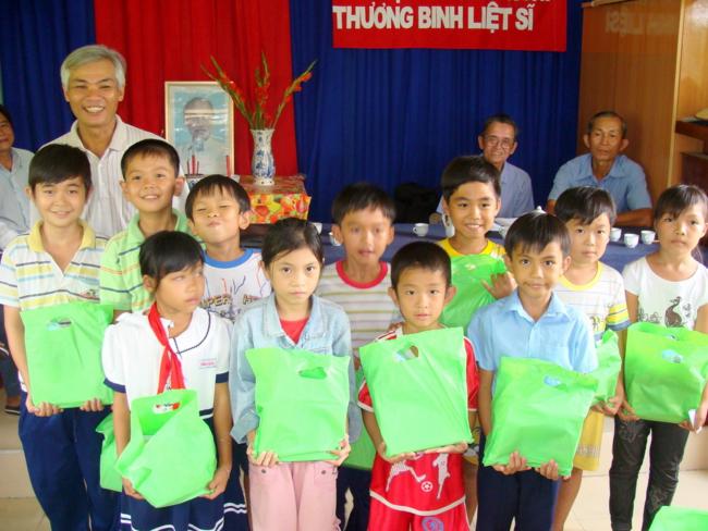 Buổi trao quà có sự tham dự của ông Lê Thanh Trang – Trưởng ấp Đồng; ông Nguyễn Văn Nhì – Chi Bộ ấp Đồng; ông cao Văn Thắm – Chi hội Phó CHCTĐ; ông Lê Quang Hiền – Chi hội Trưởng Hội Khuyến Học; ông Trương Văn Tranh – Chủ tịch Hội Khuyến Học xã Trung An; cùng thầy cô giáo trường Tiểu học xã Bình Đức, các phụ huynh học sinh và các thành viên đạo tràng Phật Hóa.