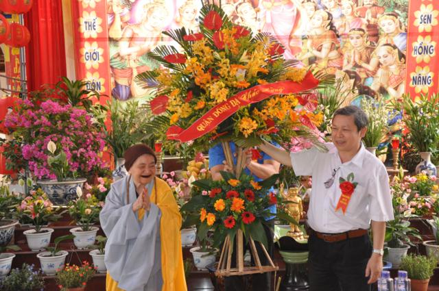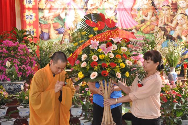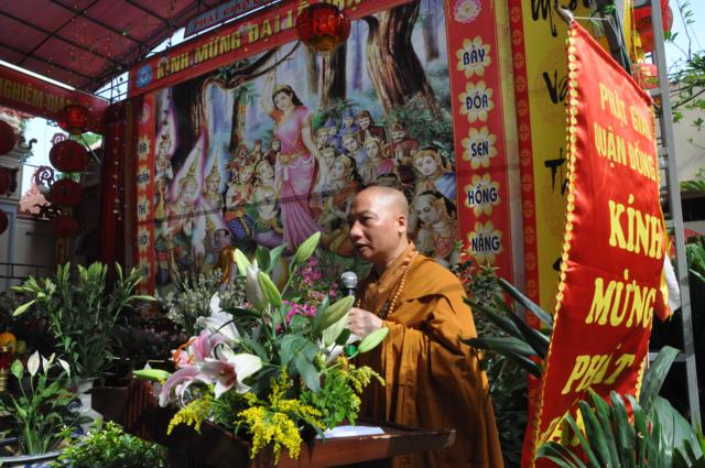 Đại lễ Phật đản diễn ra trong không khí trang nghiêm, hân hoan chào đón ngày Đức Phật đản sinh. Tại buổi lễ, đại diện chính quyền và các ban ngành trao đã trao những lẵng hoa tươi thắm cùng lời chức mừng đến Chư tôn đức Tăng Ni, Phật tử trong Quận. Tiếp đó TT. Thích Chiếu Tuệ, đại diện cho chư tôn đức giáo phẩm đọc thông điệp của Đức Pháp chủ Thích Phổ Tuệ. Đức Pháp chủ gửi thông điệp cầu chúc chư tôn giáo Phẩm Tăng Ni, Phật tử trong và ngoài nước một mùa Phật đản an lạc và hoan hỷ, đồng thời kêu gọi Tăng Ni, Cư sỹ, Phật tử các cấp Giáo hội Phật giáo Việt Nam đạt được nhiều thành tựu Phật sự trên tất cả các lĩnh vực, luôn đồng hành cùng Dân tộc của Đảng, Nhà nước.