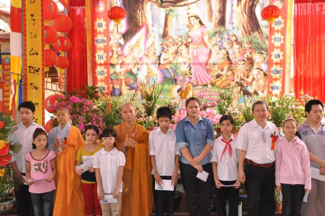 Cũng trong dịp này TT.Thích Chiếu Tuệ và Ni Sư Thích Đàm Minh đã tặng quà động viên các cháu có hoàn cảnh khó khăn trong Quận.