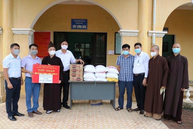 Tại 2 chốt kiểm soát dịch Covid-19 thôn Vệ Linh và Cộng Hòa, đại diện Học viện Phật giáo Việt Nam đã gửi tặng lần lượt số tiền 3 triệu đồng và 2 triệu đồng cho mỗi chốt. Cùng với đó là một phần quà nước giải khát cho lực lượng chống dịch.