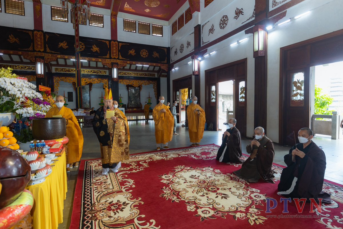 Trước đó, chư tôn đức môn đồ pháp quyến đã tác bạch cung thỉnh Hòa thượng Thích Lệ Trang – Phó Trưởng ban Nghi lễ Trung ương, Phó Trưởng ban Trị sự kiêm Trưởng ban nghi lễ Phật giáo TP.HCM cùng chư tôn đức Ban Nghi lễ để cử hành các nghi thức cung tiến Giác linh cố Đại lão Hoà thượng Đệ tam Pháp chủ GHPGVN theo nghi thức truyền thống.