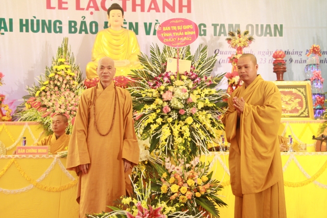 Buổi lễ có sự chứng minh, tham dự của: HT.Thích Thanh Dục, Uỷ viên Thường trực HĐCM TƯGH, Chứng minh BTS Phật giáo tỉnh; cùng chư tôn đức trong BTS Phật giáo tỉnh: TT.Thích Thanh Hòa, UV HĐTS, Trưởng BTS; TT.Thích Thanh Định, UV HĐTS, Phó ban Thường trực; TT.Thích Thanh Vượng, Phó BTS, Trưởng BTS Phật giáo Kiến Xương; cùng chư tôn đức BTS PG tỉnh, BTS PG các huyện, thành phố trong tỉnh; chư tôn đức trụ trì các tự viện trong và ngoài tỉnh.