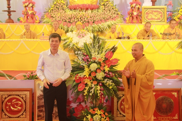 Buổi lễ vinh dự đón tiếp: ông Trần Quang Minh, Phó ban Dân vận Tỉnh ủy; ông Nguyễn Văn Thạo, Phó ban Tôn giáo (sở Nội vụ) tỉnh; ông Bùi Văn Vinh, Phó Phòng PA02 (Công an tinh), ông Nguyễn Văn Hóa, Phó Chủ tịch UBND huyện; đại diện lãnh đạo xã Quang Bình, đại diện chính quyền các xã trong huyện và trên 1000 Phật tử về dự lễ.