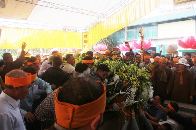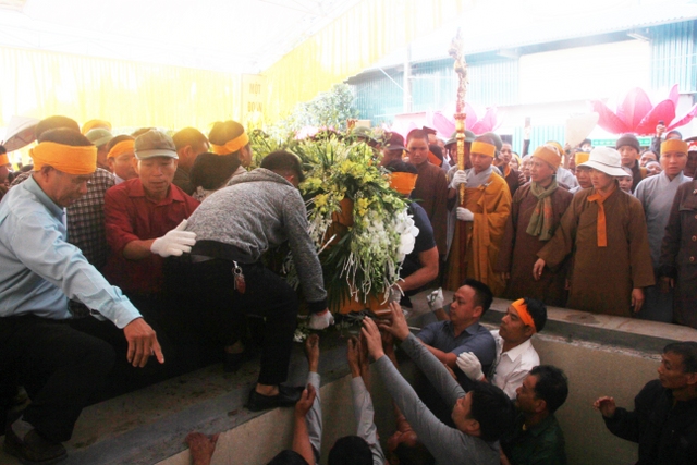 Kết thúc buổi lễ, chư tôn đức, quý Phật tử đã cử hành khóa lễ cầu siêu, tụng Đại bi thập chú để di quan, cầu nguyện Giác linh Sư cô thượng phẩm thượng sinh, cao đăng Phật quốc. Đại chúng đã cất vang tiếng niệm Phật, hòa cùng tiếng chuông trống bát nhã cung thỉnh kim quan nhập Bảo tháp tại chùa Hồng Ân (thôn Quân Hành, xã Bình Nguyên, Kiến Xương).