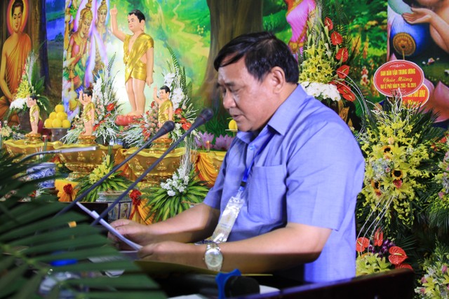 Trong không khí thắm tình đạo vị, gắn bó giữa đạo và đời, ông Phạm Văn Xuyên, Tỉnh Ủy viên, Phó Chủ tịch UBND tỉnh thay mặt cho các cấp lãnh đạo tỉnh có lời phát biểu. Ông ghi nhận và đánh giá cao những đóng góp của giới Tăng Ni, Phật tử đối với sự phát triển kinh tế – xã hội của tỉnh trong thời gian qua; đồng thời đề nghị trong thời gian tới, các vị trong Ban Trị sự Giáo hội Phật giáo cùng các Tăng Ni trong tỉnh tiếp tục tập trung tích cực tuyên truyền, vận động Tăng Ni, tín đồ Phật tử trong tỉnh chấp hành tốt các chủ trương, chính sách của Đảng, pháp luật của Nhà nước, tích cực tham gia vào các phong trào thi đua yêu nước tại địa phương, sống tốt đời đẹp đạo. Quan tâm xây dựng Giáo hội Phật giáo tỉnh vững mạnh, hướng thiện, bài trừ mê tín dị đoan, bảo vệ thuần phong mỹ tục, giữ gìn và phát huy bản sắc văn hóa dân tộc. Tiếp tục quan tâm xây dựng, củng cố đội ngũ Tăng Ni từ bi, trí tuệ, thực hiện nghiêm giới luật và uy nghi đạo hạnh; kết hợp chặt chẽ giữa việc thi hành chính pháp với tôn trọng và thực hiện nghiêm pháp luật của Nhà nước trong hoạt động Phật sự, đặc biệt các quy định của pháp luật về đất đai và xây dựng liên quan đến tín ngưỡng, tôn giáo…