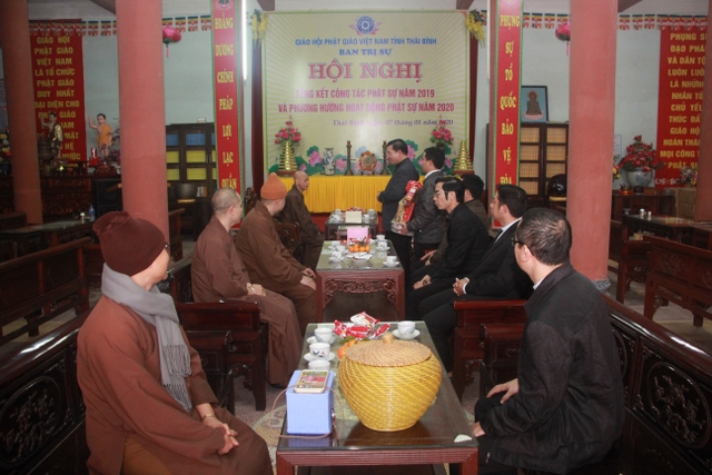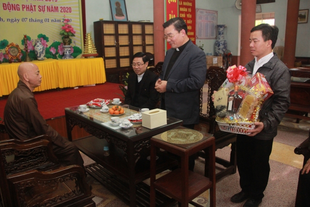 Đoàn đã thay mặt Linh mục Phê rô Nguyễn Văn Đệ, Tổng Giám mục Giáo phận Thái Bình cùng toàn thể đồng bào Công giáo Thái Bình gửi lời chúc tốt đẹp nhất tới BTS PG tỉnh và các Tăng Ni, tín đồ Phật tử trong tỉnh, vui mừng trước những thành tựu của đất nước và tỉnh nhà, phấn khởi trước những thành tựu Phật sự của GHPGVN tỉnh, khẳng định mối đoàn kết gắn bó giữa hai tôn giáo trong đời sống tín ngưỡng, văn hóa tâm linh của nhân dân Thái Bình. Đoàn chúc chư tôn đức và tín đồ Phật tử vui xuân đón Tết an lành, hạnh phúc, gặt hái nhiều thành công trong năm mới.