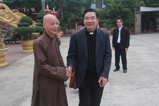 Đoàn đi có: Linh mục Đa minh Đặng Văn Cầu, Giám đốc Đại chủng viện Thánh Tâm Mỹ Đức cùng các Linh mục đại diện giáo phận Thái Bình – Hưng Yên. TT.Thích Thanh Định, UV HĐTS, Phó ban Thường trực BTS PG tỉnh, ĐĐ.Thích Thanh Ân, Chánh Thư ký BTS đại diện tiếp đoàn.