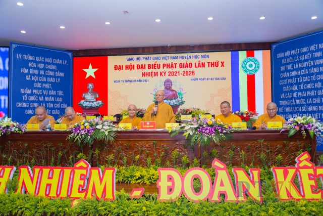 Tại đây, đại diện tiểu ban Nhân sự đã trình danh sách giới thiệu nhân sự được suy cử vào tân Ban Trị sự GHPGVN H.Hóc Môn nhiệm kỳ 2021 – 2026. Sau đó, Hoà thượng Trưởng Ban Trị sự lấy ý kiến các đại biểu và biểu quyết thông qua danh sách nhân sự tại Đại hội chính thức.
