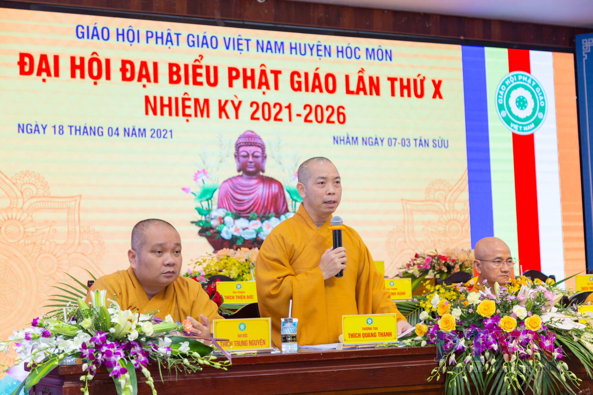 Thượng tọa Thích Thiện Quý thay mặt Ban Thường trực Ban Trị sự GHPGVN TP.HCM đã tán thán công đức và sự đóng góc của Hoà thượng Thích Thiện Minh – Trưởng Ban Trị sự với những đóng góp tích cực nhằm xây dựng Phật giáo huyện nhà và sự nhiệt tâm trong việc đào tạo, bàn giao cho chư tôn đức nhân sự kế thừa; cùng với đó là tinh thần đoàn kết, đồng tâm hiệp lực của toàn thể chư tôn đức Tăng Ni, Phật tử Phật giáo H.Hóc Môn trong công tác chuẩn bị tổ chức đại hội.