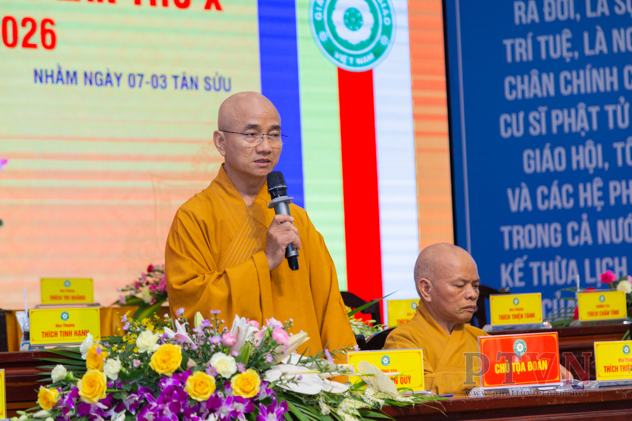 Sau phát biểu khai mạc phiên trù bị của Hòa thượng Thích Minh Thiện, chư tôn đức thành viên Ban Trị sự đã thông qua nội quy, báo cáo công tác chuẩn bị đại hội đến chư tôn đức Chủ Tọa đoàn.