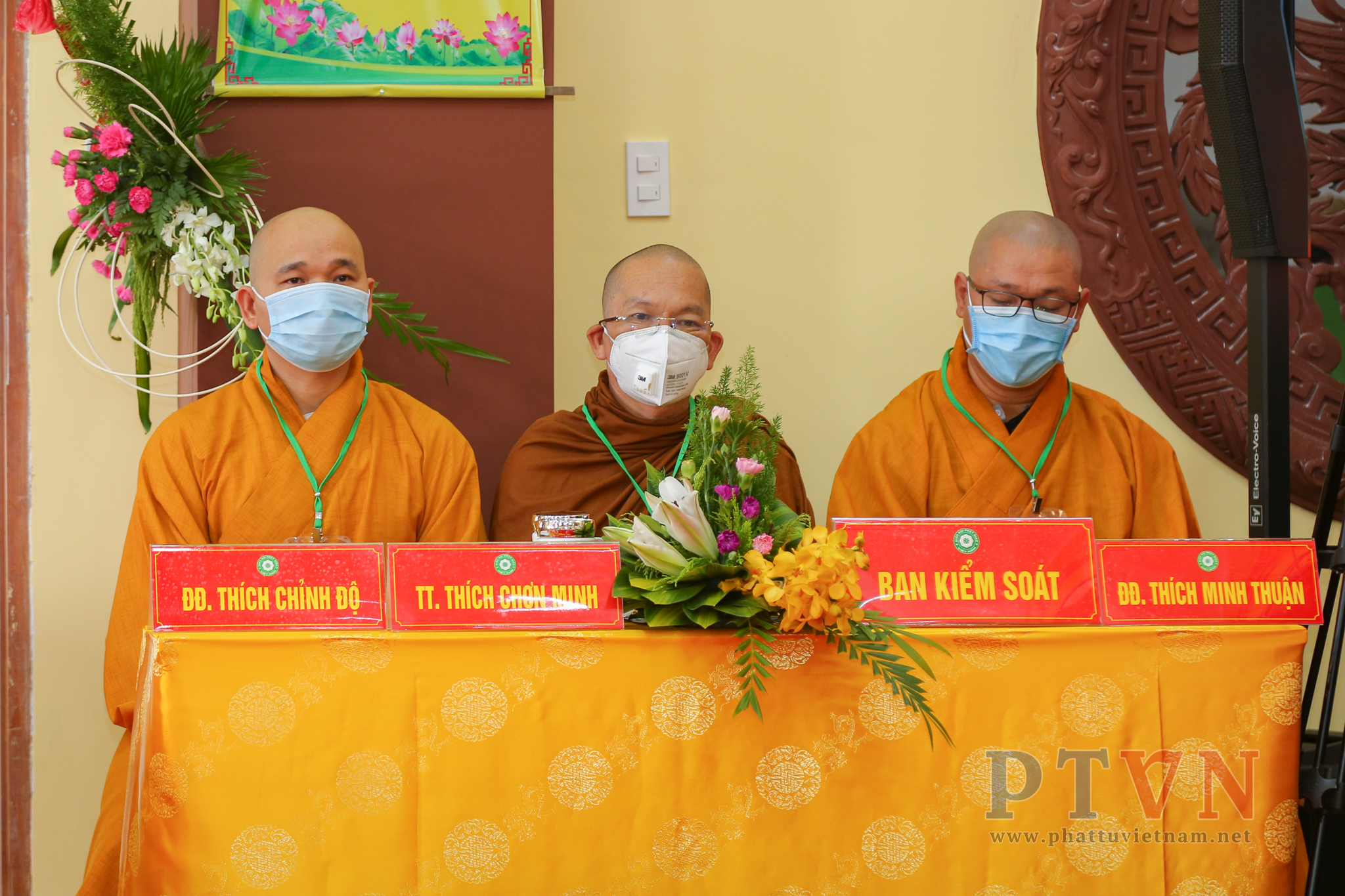 Đoàn chủ tọa đại hội gồm có: TT.Thích Thiện Quý – Phó Trưởng Ban kiêm Chánh Thư ký BTS GHPGVN TP.HCM; TT.Thích Quang Thạnh – Phó Thư ký kiêm Chánh Văn phòng BTS GHGPVN TP.HCM; ĐĐ.Thích Trung Nguyện – Phó Thư ký BTS GHPGVN TP.HCM, HT.Thích Thiện Xuân – Trưởng Ban Tổ chức đại hội cùng chư tôn đức Thường trực BTS GHPGVN quận Tân Phú.
