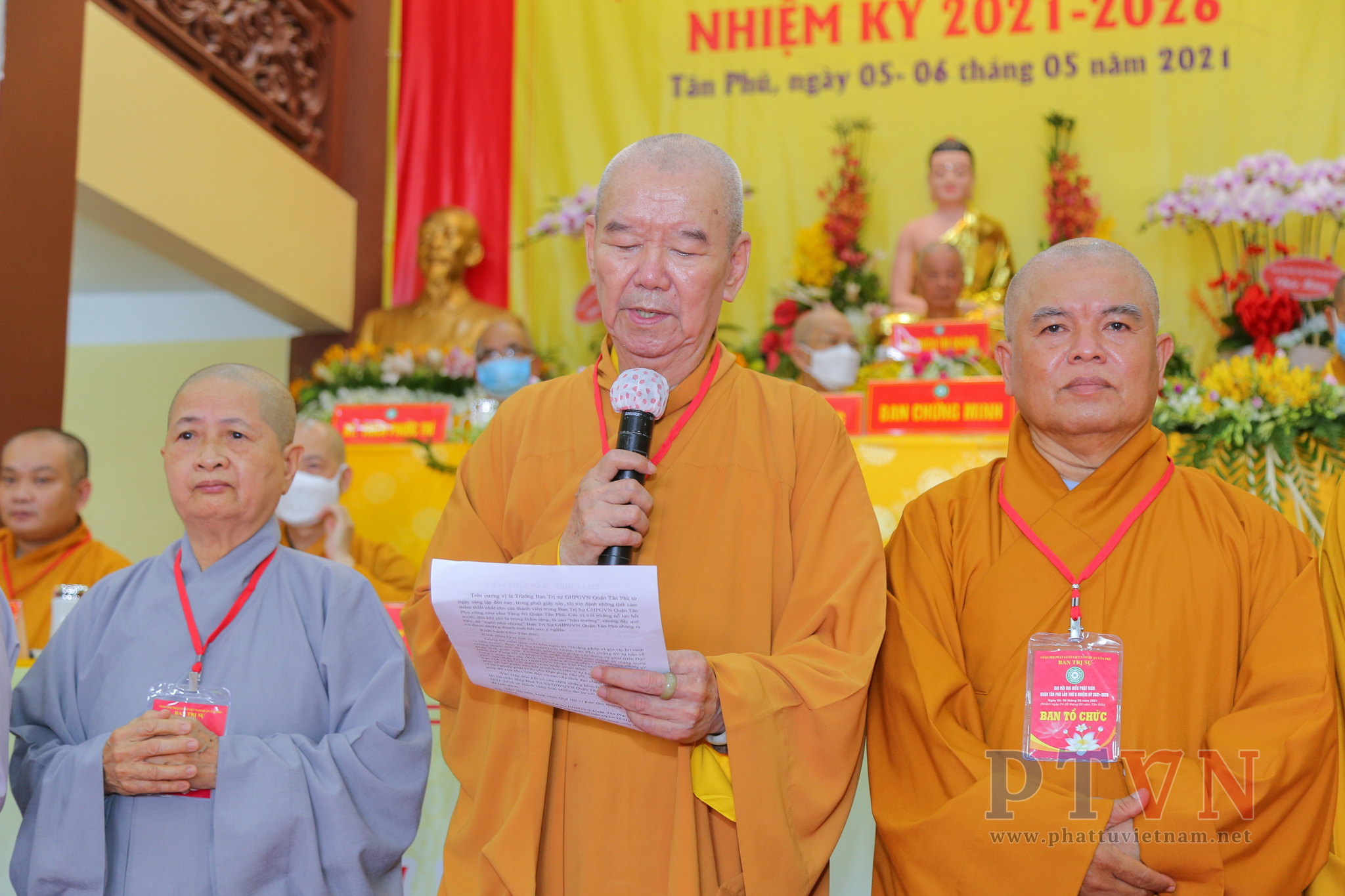 Phát biểu khai mạc, HT.Thích Thiện Xuân khẳng định, với tinh thần đoàn kết, hòa hợp, BTS quận Tân Phú đã đạt được những thành tựu trong các công tác Phật sự trong nhiệm kỳ qua, cần phải giữ gìn, kế thừa và phát huy trong nhiệm kỳ mới. Đại hội sẽ giới thiệu các thành viên có phẩm chất, có nhiệt huyết, có đạo tâm để cống hiến, ổn định, kế thừa và phát triển Giáo hội.