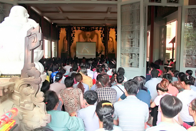 Ngoài ra, một cảm giác rất thoải mái an lạc trong khi nghe Thượng tọa thuyết giảng cũng là một nhân tố tạo nên sức hútlớn đối với người muốn tìm cầu học đạo. Nhìn từ Giảng đường chính cho đến 2 tầng Chánh điện và khắp khuôn viên chùa Từ Tân, người ngồi san sát, ánh mắt dán chặt trên màn hình, chăm chú lắng nghe từng Pháp âm vang lên.