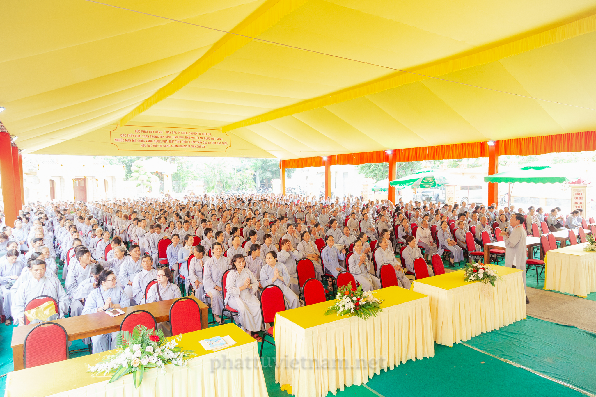 Trưởng lão HT.Thích Thiện Duyên – Phó Pháp chủ HĐCM GHPGVN, đương vi Đường đầu Hòa thượng cùng chư Tôn đức Hội đồng Thập sư đã quang lâm truyền trao giới pháp đến 753 giới tử (641 giới tử Thập thiện, 112 giới tử Bồ tát tại gia).
