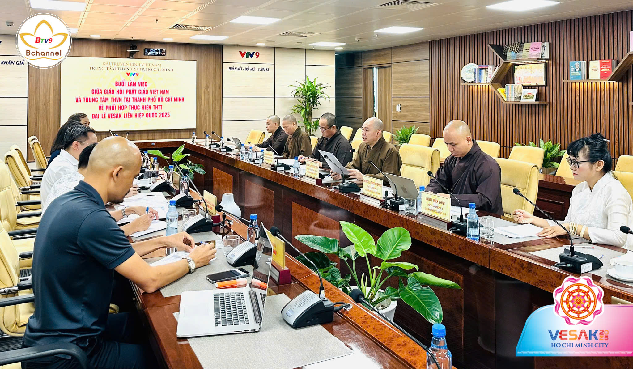 Sáng 25/4 tại TP.HCM, Thượng tọa Thích Đức Thiện – Phó Chủ tịch, Tổng Thư ký HĐTS cùng chư Tôn đức Trung ương Giáo hội đã có buổi làm việc với lãnh đạo VTV9 – Trung tâm Truyền hình Việt Nam tại TP.HCM.