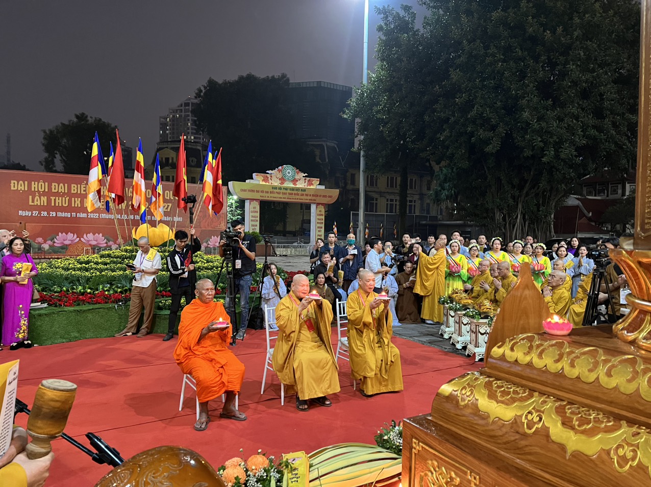Tối nay, 26-11, tại tiền sảnh Cung Văn hóa Hữu Nghị Việt -Xô, Ban Văn hóa Trung ương tổ chức khóa lễ tụng kinh và thắp nến cầu nguyện cho Đại hội đại biểu Phật giáo toàn quốc lần thứ IX nhiệm kỳ 2022-2027 thành công tốt đẹp.