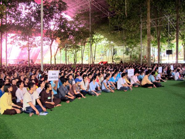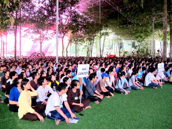 Quý thầy, quý sư cô trong BTC đã hoan hỷ đón chào các em bằng nụ cười thân thương nhất. Sau đó các em quay quần bên nhau sinh hoạt tập thể và Thủ lĩnh của Đoàn Thanh Niên Phật Quang miền Nam đã giới thiệu cho các em làm quen với nhau, làm quen với môi trường mới mà các em sẽ phải nhận lấy trách nhiệm được phân công phục vụ trong các Ban.