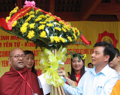 Thay mặt lãnh đạo tỉnh Quảng Ninh, ông Phó Bí thư Thường trực Tỉnh uỷ đã tặng đoàn đại biểu dự VESAK 2008 về thăm Yên Tử lẵng hoa tươi thắm.