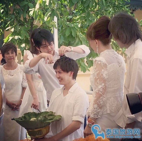 Đến tham gia nghi thức thế phát có sự hiện diện của gia đình và bạn gái Now và các bạn bè trong làng giải trí Thái.