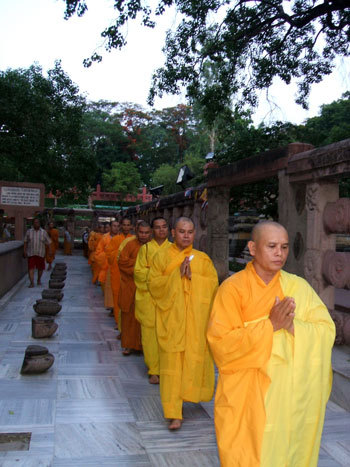 Tăng ni sinh Việt Nam tại Ấn Độ nhiễu tháp tại Bồ Đề Đạo Tràng