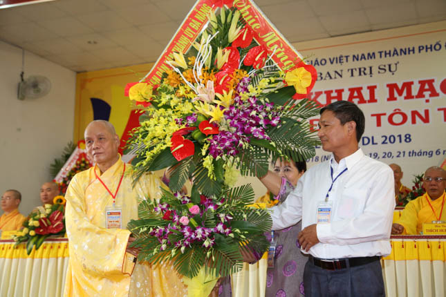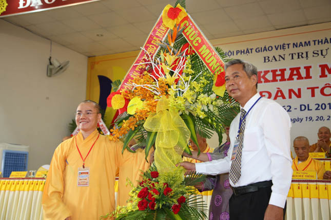 Ông Ngô Khôi đã thay mặt lãnh đạo các cấp chính quyền phát biểu chúc mừng Đại giới đàn và mong rằng Đại giới đàn sẽ tuyển chon được nhiều giới tử duy trì mạng mạch Phật giáo.
