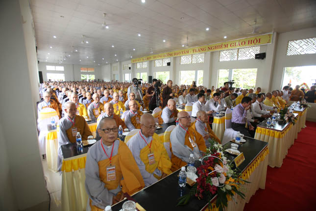 Sau nghi lễ niệm Phật, HT. Thích Thiện Toàn đã đãi lao HT. Thích Từ Tánh – Trưởng Ban tổ chức đọc diên văn khai mạc Đại giới đàn. ĐĐ. Thích Thông Đạo báo cáo quá công tác tổ chức Đại giới đàn Tôn Thắng; TT. Thích Từ Nghiêm cung tuyên tiểu sử Cố Trưởng lão Hòa thượng Thích Tôn Thắng.