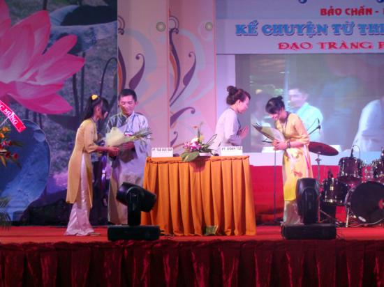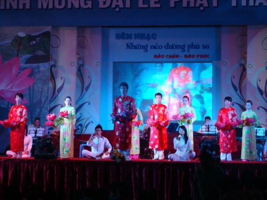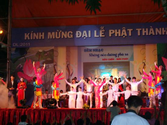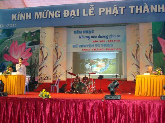 Thời Pháp thoại vừa chấm dứt, tại lễ đài chùa Phật Quang – BRVT (trước sân Chánh điện) đã diễn ra chương trình văn nghệ với chủ đề NHỮNG NẺO ĐƯỜNG PHÙ SA thật hoành tráng, với sự góp mặt của các ca sĩ nổi tiếng đến từ Hà Nội, thành phố Hồ Chí Minh, nước Mỹ, v.v… giúp cho đêm văn nghệ mang tính đa màu sắc nghệ thuật. Cả hội chúng như chung một niềm đại hoan hỷ nhân ngày kỷ niệm Phật Thành Đạo trong không gian u tịch thiêng liêng này.
