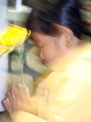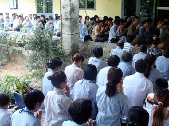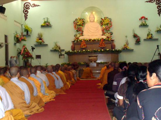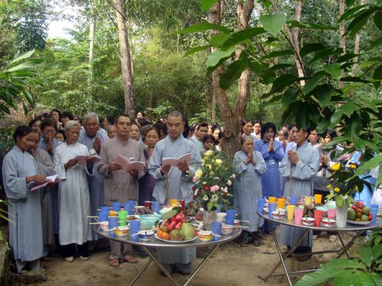 Ngày hôm sau, đúng 4giờ sáng khi màn đêm và cái lạnh còn bao phủ cả núi rừng, Chư tôn đức Tăng Ni và Phật tử đã trang nghiêm đạo tràng, bắt đầu nghi thức tưởng niệm, tụng bài Sám Thành Đạo và dâng hoa cúng dường.