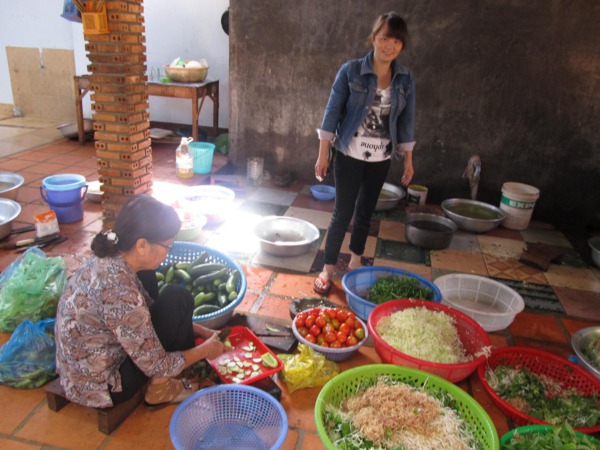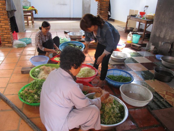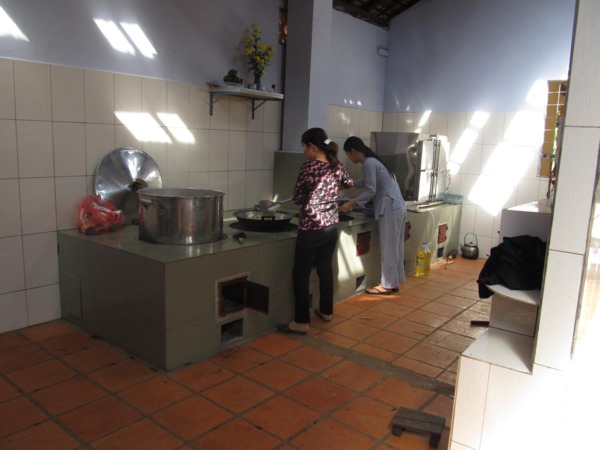 Chị Sáu Nguyên một Phật tử tham gia nấu ăn phục vụ khóa tu đã tươi cười khi đứng trước cái bếp mới mà thầy vừa cho xây dựng xong: ” bữa ni nấu ăn thấy khỏe chi lọa, bếp núc rộng rãi, kỳ trước bếp nhỏ quá… nấu ăn cực muốn chết “.