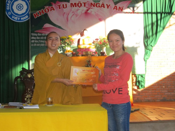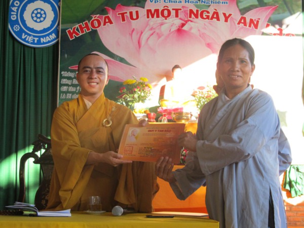 Việc tổ chức quy y được ban tổ chức thông báo trước lễ bế mạc 02 tháng và lập danh sách đăng ký từ các buôn gửi về cho ban tổ chức. Sau đó thầy trụ trì đặt pháp danh và cho in ấn. Vì vậy, sau khi truyền giới bà con đã có lá phái cầm tay. Ai cũng vui cũng mừng vì từ nay mình chính thức là con của Phật.