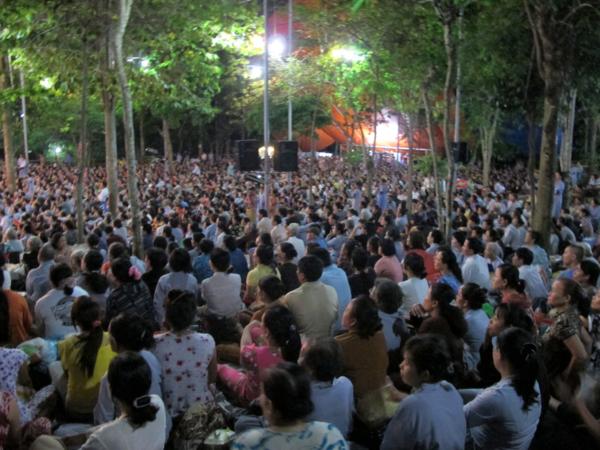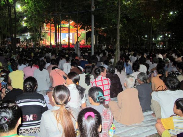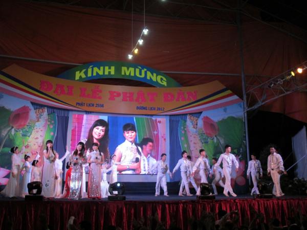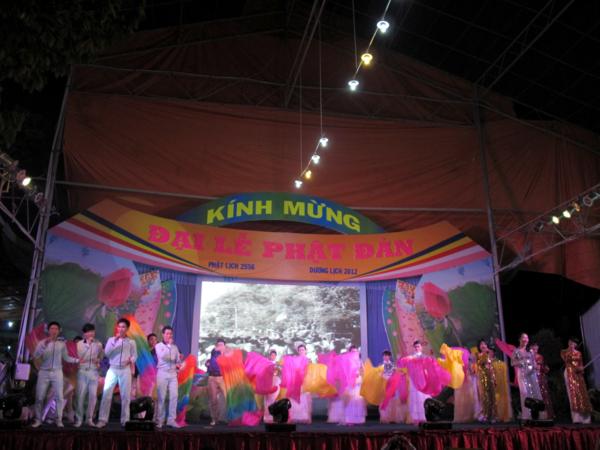 Sân khấu chính nơi thực hiện các chương trình của buổiđại lễ mừng Phật Đản tại Bổn tự được Ban Tổ Chức thiết kế chu đáo và hoành tráng. Riêng các khu vực khác dành cho Phật tử ngồi đều có gắn màn ảnh rộng và ti vi màn hìnhphẳng để khán giả tiện theo dõi. Tuy đêm về, khí trời miền núi có vẻ mát mẻ hơn nhưng không đủ làm giảm đi sức nóng của hơn 17 ngàn khán giả đang có mặt tại khuôn viên Thiền Tôn Phật Quang với những tràng pháo tay giòn giã tưng bừng.