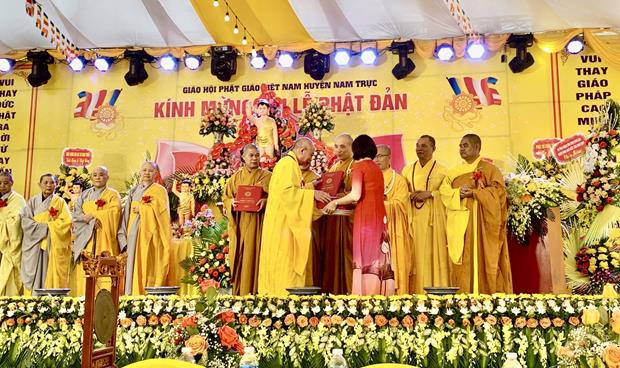 Trao quyết định chuẩn y nhân sự Ban Trị sự GHPGVN huyện Nam Trực, nhiệm kỳ 2021-2026.