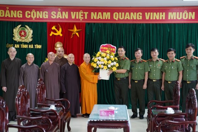 Tại buổi gặp mặt, Thượng tá Nguyễn Hồng Phong – Giám đốc Công an tỉnh bày tỏ lòng cảm ơn trước tình cảm của Ban Trị sự Phật giáo tỉnh Hà Tĩnh dành cho lực lượng Công an tỉnh Hà Tĩnh nói chung và Giám đốc Công an tỉnh nói riêng. Đồng thời ghi nhận những đóng góp quan trọng của Ban trị sự Giáo hội Phật giáo tỉnh, cùng chức sắc Phật giáo và tăng ni, Phật tử luôn chung vai, đồng hành cùng lực lượng Công an trong sự nghiệp xây dựng và bảo vệ Tổ quốc. Giám đốc mong muốn thời gian tới chư vị Tăng, ni, Phật tử tiếp tục đồng hành cùng cấp ủy, chính quyền tỉnh Hà Tĩnh đoàn kết thực hiện thắng lợi các nhiệm vụ phát triển kinh tế – xã hội; phối hợp chặt chẽ với lực lượng Công an trong công tác đảm bảo An ninh trật tự trên địa bàn tỉnh.