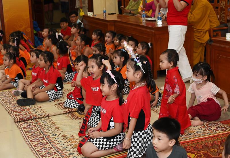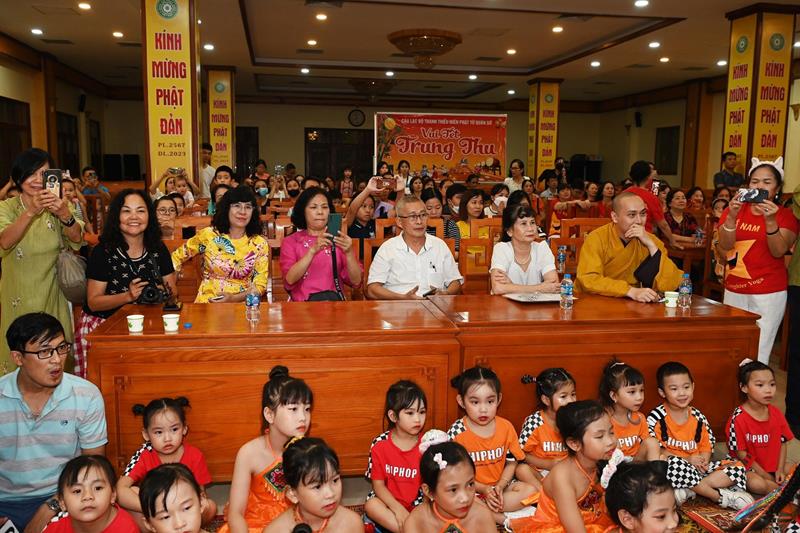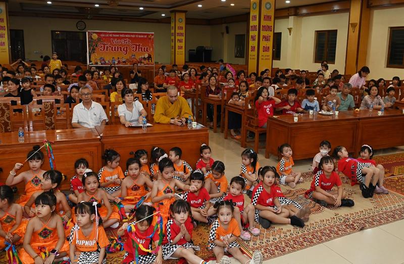 Tại đêm hội Vui Trung thu Ban tổ chức cùng kết hợp với lãnh đạo phường, tổ dân phố, tổ chức cho toàn thể các em bé sinh sống tại địa bàn sở tại cùng tới tham dự tạo không khí hoan hỉ tràn đầy Đạo vị.