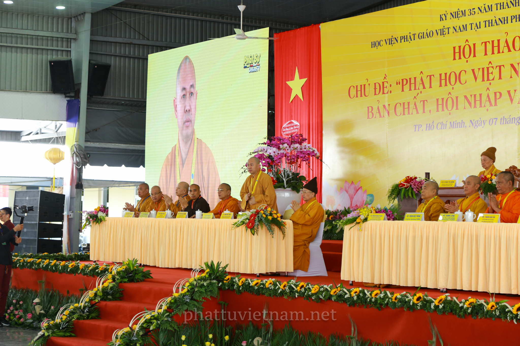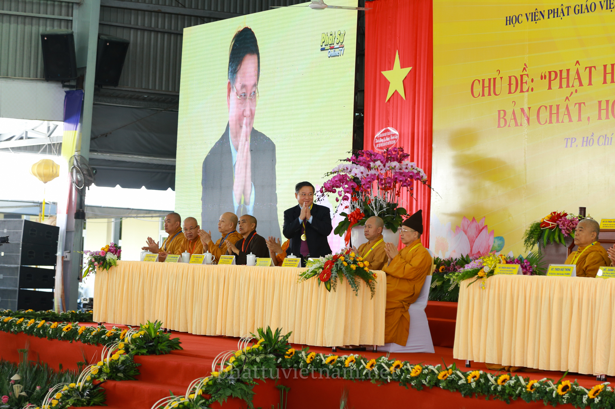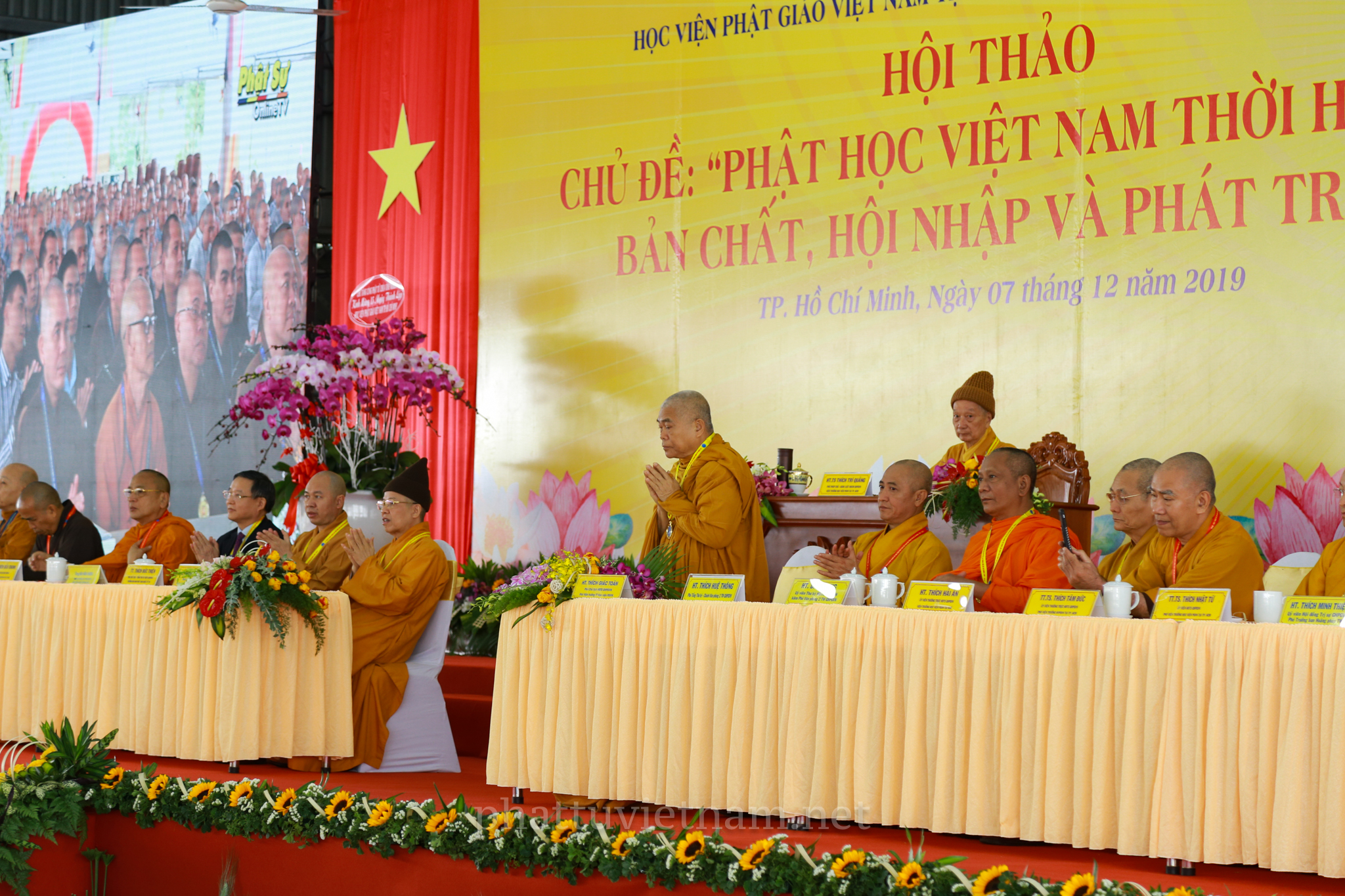 Ban tổ chức Hội thảo trân trọng đón tiếp sự hiện diện của Đức trưởng lão Hòa Thượng Thích Trí Quảng – Đệ nhất phó pháp chủ kiêm Giám luật HĐCM GHPGVN, Viện Trưởng Học Viện Phật Giáo Việt Nam tại TP.HCM; HT.Thích Giác Toàn – Phó chủ tịch Hội Đồng Trị sự, Viện Trưởng Viện Nghiên cứu, Phó Viện Trưởng HVPGVN TP.HCM; TT.Thích Thanh Quyết – Phó chủ tịch HĐTS, Trưởng Ban Giáo dục Phật giáo TW, Viện Trưởng HVPGVN TP Hà Nội; TT.Thích Đức Thiện – Phó chủ tịch HĐTS, Tổng Thư ký HĐTS GHPGVN, Trưởng Ban Phật giáo Quốc tế TW; HT.Thích Huệ Thông – phó Tổng Thư Ký kiêm Chánh Văn Phòng II TW , HT.Danh Lung – Phó văn phòng II TW GHPGVN , HT.Thích Hải Ấn – UVTT HĐTS GHPGVN – Viện trưởng Học viện Phật giáo Huế, TT.Thích Bửu Chánh – UVTT HĐTS, Phó Viện trưởng Học viện Phật giáo VN tại TP.HCM , TT.Thích Minh Thành – UV. TT HĐTS – Phó viện trưởng Viện Nghiên cứu Phật giáo VN, Phó Trưởng Ban Giáo dục Phật Giáo TW, TT.Thích Tâm Đức – UVTT HĐTS, Phó Viện trưởng Học viện Phật giáo VN tại TP.HCM , TT.Thích Nhật Từ – Phó Viện trưởng, Trưởng khoa Triết học Phật giáo HVPGVN tại TP.HCM; HT.Thích Minh Thiện – Phó Trưởng Ban Hoằng Pháp TW Giáo Hội, HT. Thích Chơn Không – Phó Trưởng Ban Hướng dẫn Phật tử TW, TT.Thích Phước Nguyên – Phó Trưởng Ban Pháp Chế TW, TT.Thích Minh Nhẫn – Phó Trưởng Ban Hoằng Pháp TW… đã quang lâm chứng minh buổi lễ, cùng sự hiện diện của chư tôn đức HĐĐH, Ban Giảng Huấn, Cựu Tăng Ni sinh các khóa và TNS đang theo học tại Học Viện.
