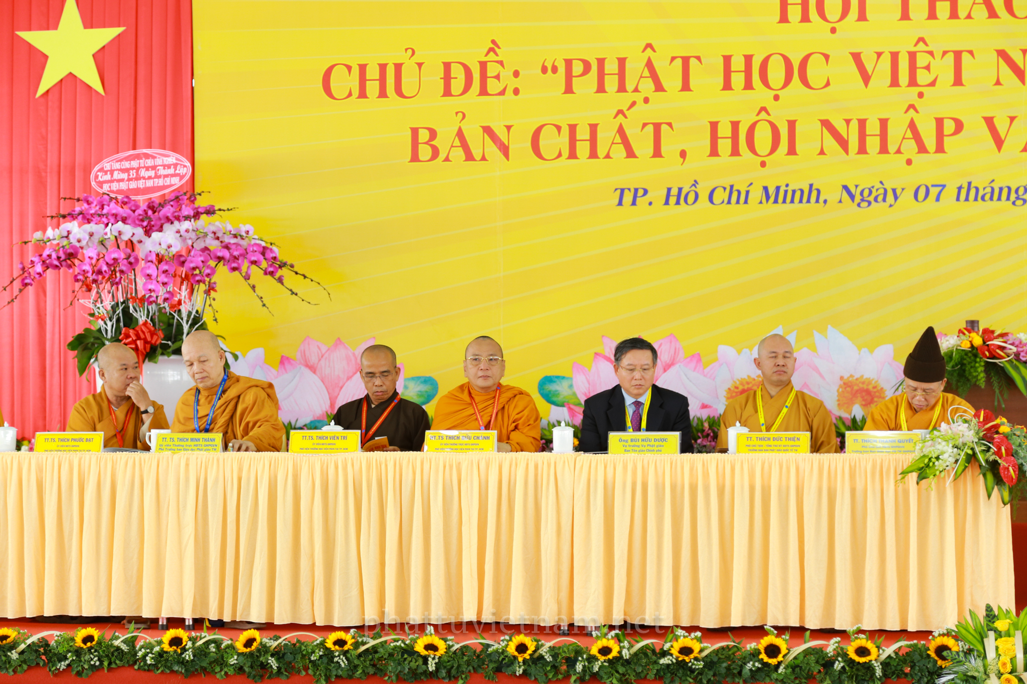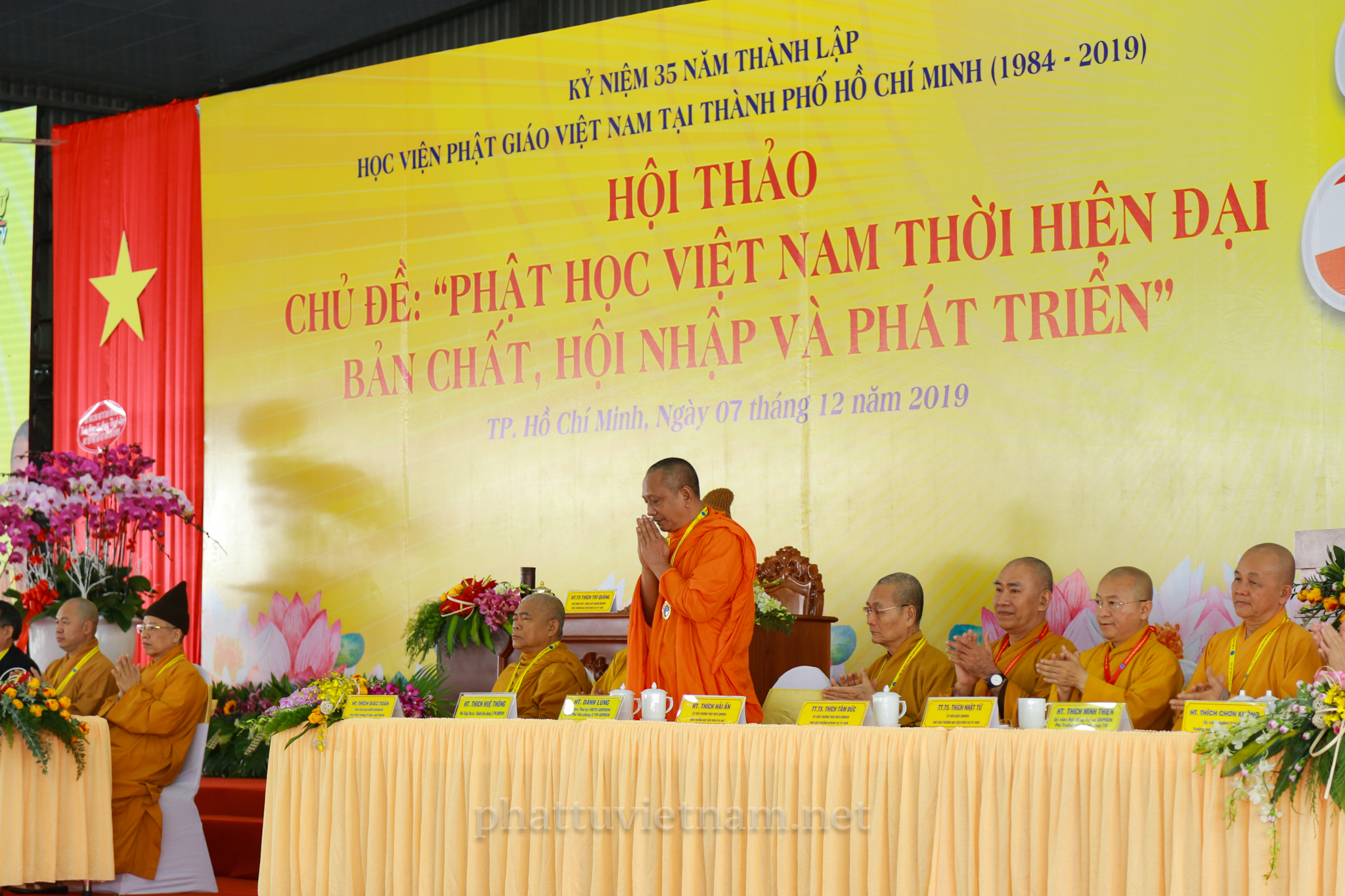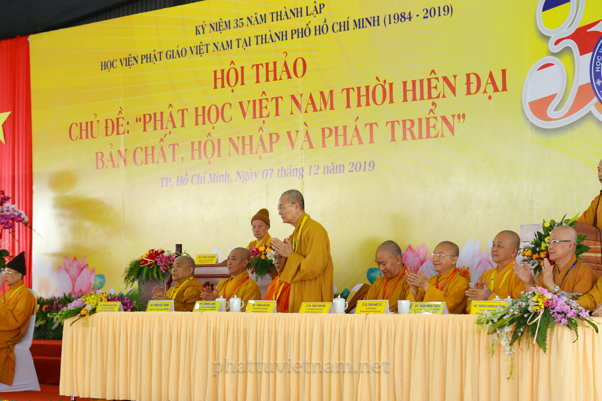 Ban tổ chức Hội thảo trân trọng đón tiếp sự hiện diện của Đức trưởng lão Hòa Thượng Thích Trí Quảng – Đệ nhất phó pháp chủ kiêm Giám luật HĐCM GHPGVN, Viện Trưởng Học Viện Phật Giáo Việt Nam tại TP.HCM; HT.Thích Giác Toàn – Phó chủ tịch Hội Đồng Trị sự, Viện Trưởng Viện Nghiên cứu, Phó Viện Trưởng HVPGVN TP.HCM; TT.Thích Thanh Quyết – Phó chủ tịch HĐTS, Trưởng Ban Giáo dục Phật giáo TW, Viện Trưởng HVPGVN TP Hà Nội; TT.Thích Đức Thiện – Phó chủ tịch HĐTS, Tổng Thư ký HĐTS GHPGVN, Trưởng Ban Phật giáo Quốc tế TW; HT.Thích Huệ Thông – phó Tổng Thư Ký kiêm Chánh Văn Phòng II TW , HT.Danh Lung – Phó văn phòng II TW GHPGVN , HT.Thích Hải Ấn – UVTT HĐTS GHPGVN – Viện trưởng Học viện Phật giáo Huế, TT.Thích Bửu Chánh – UVTT HĐTS, Phó Viện trưởng Học viện Phật giáo VN tại TP.HCM , TT.Thích Minh Thành – UV. TT HĐTS – Phó viện trưởng Viện Nghiên cứu Phật giáo VN, Phó Trưởng Ban Giáo dục Phật Giáo TW, TT.Thích Tâm Đức – UVTT HĐTS, Phó Viện trưởng Học viện Phật giáo VN tại TP.HCM , TT.Thích Nhật Từ – Phó Viện trưởng, Trưởng khoa Triết học Phật giáo HVPGVN tại TP.HCM; HT.Thích Minh Thiện – Phó Trưởng Ban Hoằng Pháp TW Giáo Hội, HT. Thích Chơn Không – Phó Trưởng Ban Hướng dẫn Phật tử TW, TT.Thích Phước Nguyên – Phó Trưởng Ban Pháp Chế TW, TT.Thích Minh Nhẫn – Phó Trưởng Ban Hoằng Pháp TW… đã quang lâm chứng minh buổi lễ, cùng sự hiện diện của chư tôn đức HĐĐH, Ban Giảng Huấn, Cựu Tăng Ni sinh các khóa và TNS đang theo học tại Học Viện.