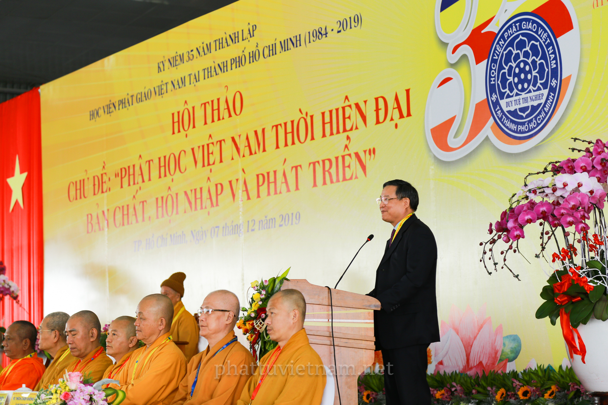 Trong bài phát biểu của đại diện Ban Tôn Giáo Chính Phủ, ông Bùi Hữu Dược đánh giá cao vai trò của Phật Học Việt Phật Giáo TP.HCM trong hệ thống giáo dục Phật Giáo Việt Nam.