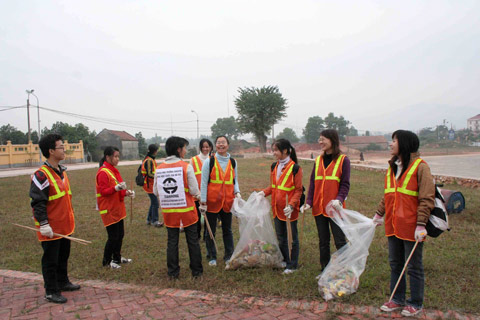 Sinh viên làm vệ sinh môi trường