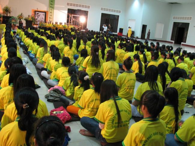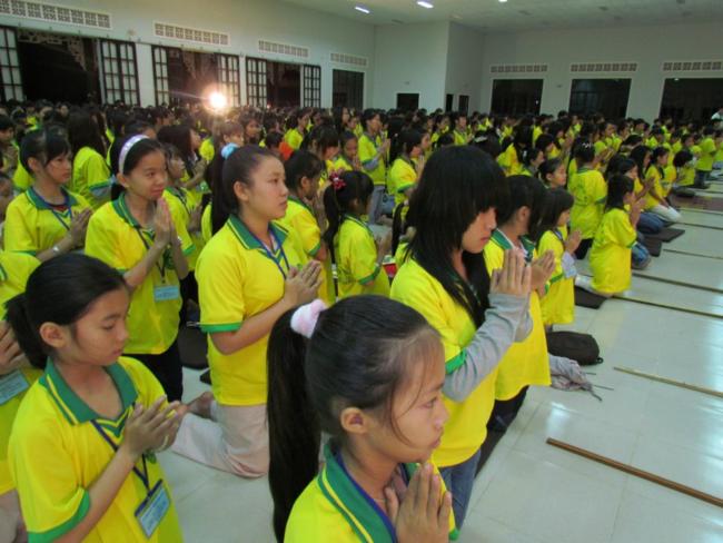 Xúc động trước sự quang tâm của chư tôn đức, bạn Nguyễn Thị Minh Uyên đã thay mặt 750 bạn trẻ đối trước chư tôn đức đọc lời phát nguyện. Trong suốt bảy ngày của khóa tu tất cả các bạn đều cố gắng chấp hành tốt nội quy, tham gia đầy đủ thời khóa… hy vọng sẽ gặt hái được nhiều thành quả tốt đẹp để làm hành tranh cho cuộc sống thời nay.